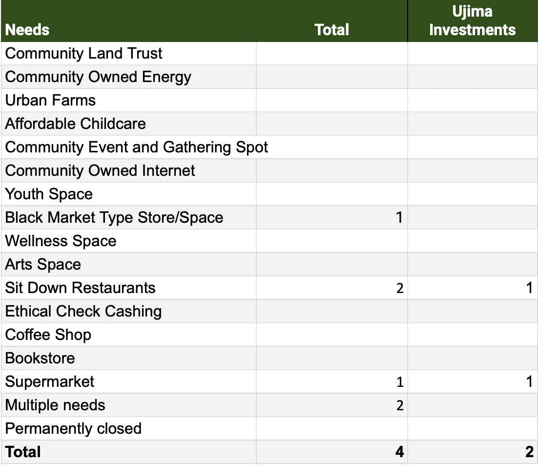 Ujima knows that community needs extend beyond small businesses, and also intends to invest in other community-identified needs through these two vehicles: